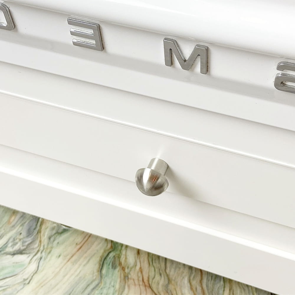 Wenn Sie auf der Suche nach zarten Formen und äußerst langlebigen Silberaccessoires sind, ist dies definitiv eine Option für Sie. Die Form eines klassischen Pilzes passt dank seiner Rundungen perfekt zu den neuesten Designtrends. Das Material, aus dem das Detail gefertigt wurde, ist rostfreier und säurebeständiger Stahl, der unter schwierigen Bedingungen wie Küchen und Badezimmern perfekt funktioniert. Möbelknopf wurde in Polen entworfen und hergestellt. Der Preis gilt für ein Stück, im Set ist jedoch eine Befestigungsschraube aus Edelstahl enthalten.