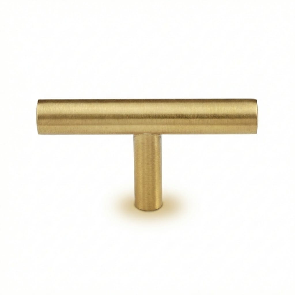 T-Griff aus Messing ist ein Vorschlag für diejenigen, die Einfachheit und außergewöhnliche Qualität suchen. Der Halter eignet sich perfekt für Küche, Bad und Ankleidezimmer. Die schlichte, minimalistische Form unterstreicht dezent den Charakter der Möbel. Bitte denken Sie daran, Messinggriffe nicht mit Chemikalien zu behandeln oder übermäßigem Kontakt mit Wasser auszusetzen, da dies die Patinierung erheblich beschleunigt.